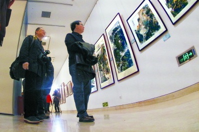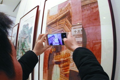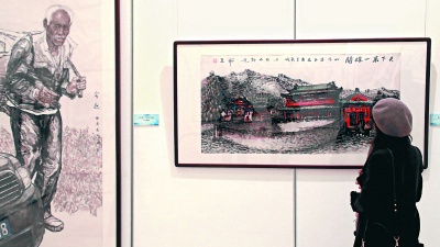 充满特色的艺术作品吸引了众多市民前来观看。城市新貌用传统笔法记录令人印象深刻。