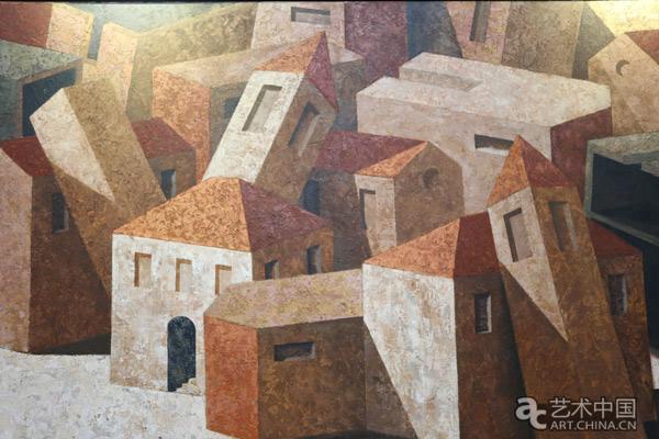 此次展会展出的布兰迪两件作品《村落》和《马》分别代表了艺术家两种不同的创作主题和手法。《村落》中,艺术家描绘了各种形态的房子,它们高低大小结构不一,或直立或倾斜,房子是结实而沉重的,但是布兰迪画面中的房子却可以像鸟在鸟巢中一样浮起,飞翔或者行走。艺术家认为现在社会流动性很强,在其作品中能看到这种社会的交流。看似无序,却表现出不稳定的内部平衡。“这些房子代表的是每一个不同的人,它们有的直直地站着,有的歪倒在别的房子上。乍一看,观众可能以为这个村子发生地震了,其实我关心和感兴趣的是这些房子与房子之间的关系,社会中人与人的关系以及如何在不稳定中建立平衡。”布兰迪告诉记者。
