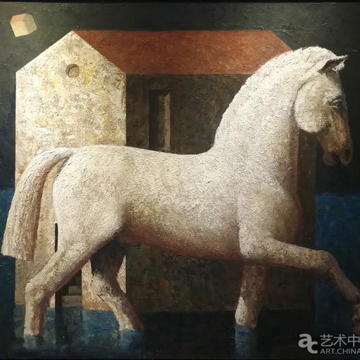 艺术家生活在意大利威尼斯,是一座古老的水城。他的作品中能看到很多水元素。比如他的《马》系列,马站立在水中,呈现出来的意境能让我们跨越国家地域的不同而产生共鸣。