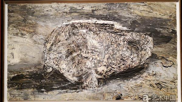 贝尔艺术中心此次展出其收藏的基弗代表作《徒特因的墓》(190x330cm)尺幅很大,吸引了众多艺术家、收藏家驻足观看。基弗是大百科全书式的艺术家。在他的作品里,我们可以见到大量关于历史、神学、科学、哲学、神话、文学等元素,每一件作品都像一座蕴含了巨量信息的日耳曼废墟博物馆。毁灭和废墟的记忆成为其作品的基建之石。这件《徒特因的墓》由艺术家创作于2008年,作品运用油彩、乳化剂、丙烯酸等材料,可以明显看到基弗所惯用的象征和创作手法。