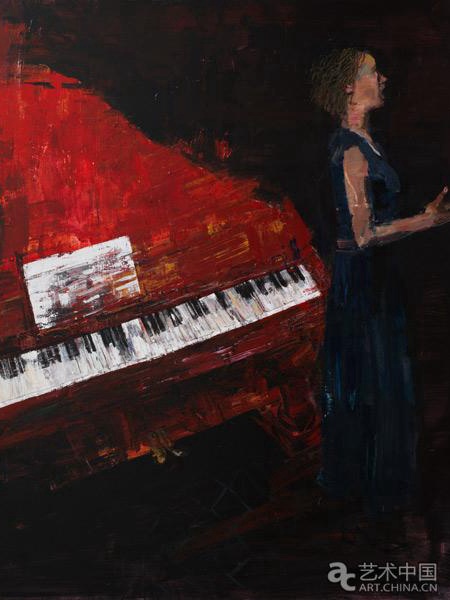 旅德艺术家白蒂毕业于中央美术学院油画系第三工作室,现生活于北京和汉堡。她的作品曾被奥地利艺术论坛美术馆、德国迪克宫美术馆、汤若望科学与艺术基金会、中央美术学院、中国油画学会等国内外机构及个人收藏。此次白蒂为艺术北京带来两件油画作品——《歌者》和《序幕》。两件作品的主题都与音乐、舞台相关。白蒂的作品关注物与人的关系,她善于在人的灵性与物的知性间建立一条与观众连接的通道,带给人无穷的想象空间。她的作品常常呈现出一种模糊的、孤独的、冷寂的氛围,启发人对自我与万物关系的思考。这两件作品都采用了大面积的红色和黑色,充满激情与热情,同时也孕育着紧张、不安与动荡,歌者向画外高声吟唱,舞蹈演员在安静地等待属于她的舞台时间,这是艺术家对自我内心和人的精神境遇的一种正视和表达。“我试图在人、自然和物之间寻找一个契合点来表达自己,最近也在尝试在创作中寻找象征性的内涵”,白蒂在接受艺术中国采访时说。据贝尔艺术中心介绍,艺术北京过后,白蒂将回到德国,参加其5月4日即将在德国德累斯顿国立美术馆开幕的展览“与A.R.彭克的对话”,届时将有20余件作品与A.R.彭克的作品一道与德国观众见面。
