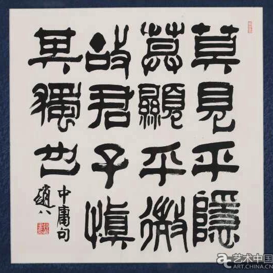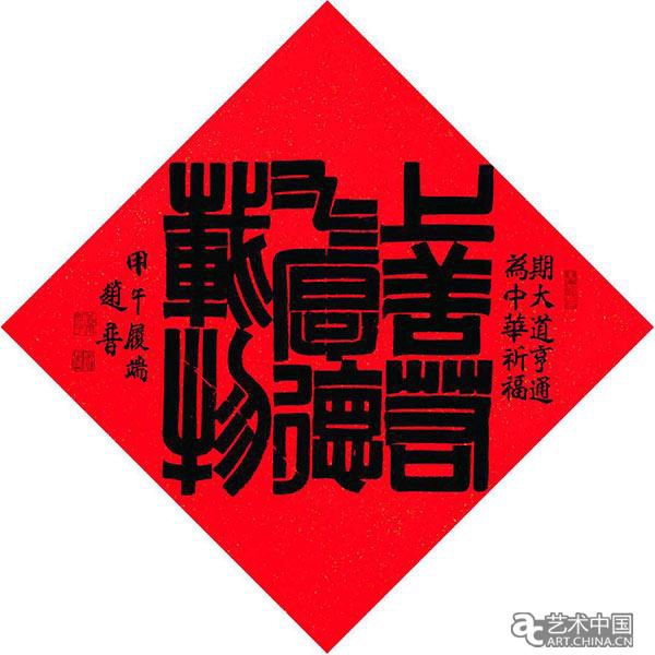 柯文辉先生在为《赵普书画集》作序中提到:“赵隶”骨骼坚稳,筋脉晓畅,抱璞怀真,气象壮穆。消化遗产,融汇增删,取精用宏,处心恭,求静谧,指死腕活,取法高, 结体质而严,铺毫沉,疾涩避设计,干湿浓淡,贯以中锋, 方笔方构,主宰临池,间有圆笔,聊为穿插,宾主随需施墨。存古拙神采,奉汉碑金梭,参证篆楷,自见流妍,调节经纬, 隐去斧痕。大字有小字凝聚意象;小件兼得巨幅奔腾。起承转合,飞扬跌宕,变异服从整体,明快含蓄携手同归。剪枝蔓,突出主峰,令通书道者临别依依回眸,未习碑帖者雅兴不减。