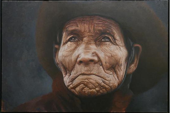 帕特丽夏·古兹曼的《冥想》以极为写实的手法描绘了一位印第安老人的凝视。