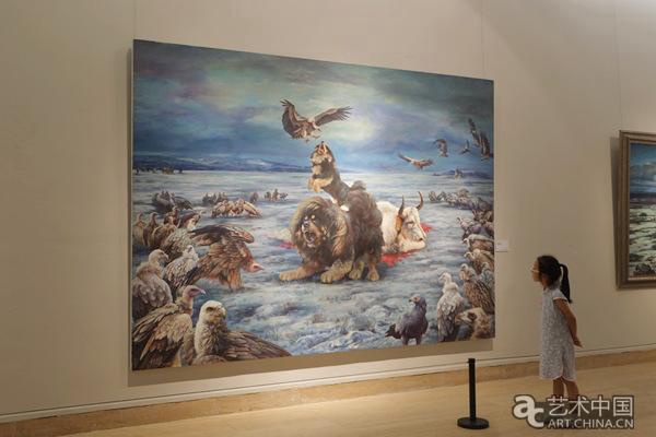 本次展览展出10年来创作的精品《呼唤》、《守护》、《秋日暖阳》、《夏日情怀》等30余幅,其中尤其因人瞩目的是三幅大画,它们是《一代天骄》、《雪域盛装》和《守护》。