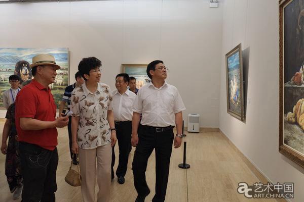 中国美协分党组书记、驻会副主席、秘书长徐里(右)观看展览作品