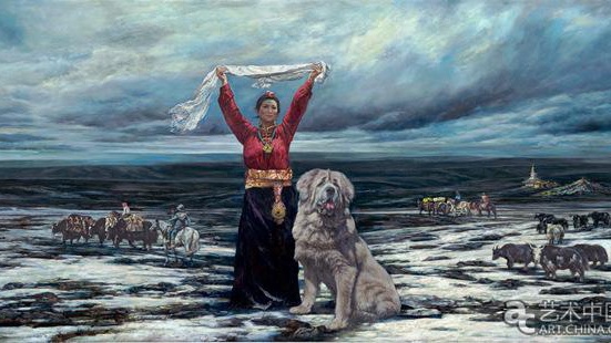 圣洁的哈达 360×180cm 2016年 布面油画