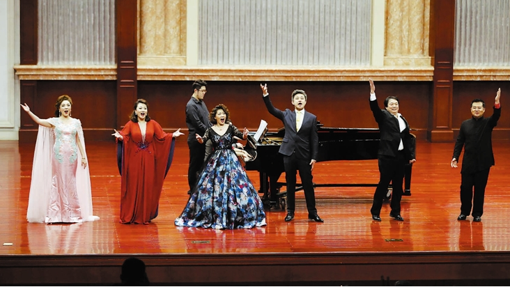 上图 中青年歌唱家联袂演唱经典歌曲。 本报记者 王 津摄