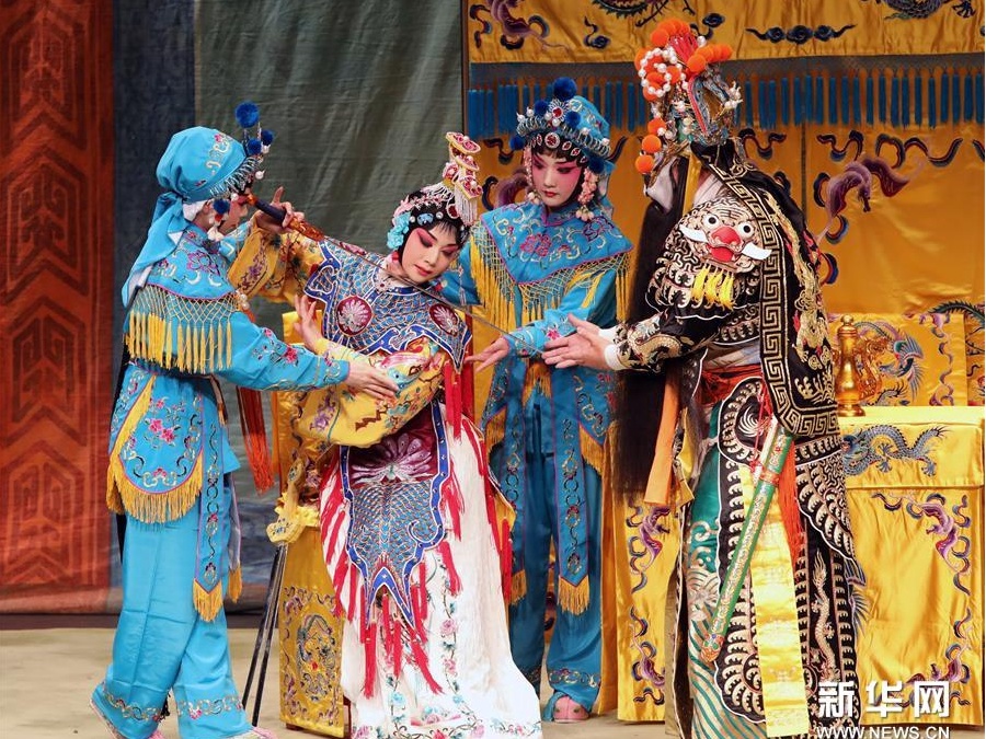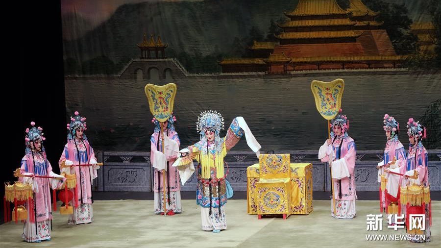 5月28日,青年演员马佳(中,剧中饰演杨贵妃)在香港大会堂表演梅派经典剧目《贵妃醉酒》。 5月28日晚,由香港特区京昆剧团等主办的“京剧大师梅兰芳艺术专场崭新展演”在香港大会堂上演。来自北京、上海、哈尔滨、深圳等地的多位青年京剧演员演绎了梅派经典剧目《贵妃醉酒》《红线盗盒》《白蛇传—断桥》和《霸王别姬》,为香港市民献上一场视听国粹盛宴。