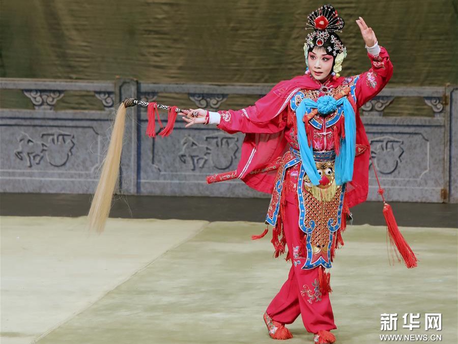 5月28日,青年演员白金(剧中饰演红线)在香港大会堂表演梅派经典剧目《红线盗盒》。 5月28日晚,由香港特区京昆剧团等主办的“京剧大师梅兰芳艺术专场崭新展演”在香港大会堂上演。来自北京、上海、哈尔滨、深圳等地的多位青年京剧演员演绎了梅派经典剧目《贵妃醉酒》《红线盗盒》《白蛇传—断桥》和《霸王别姬》,为香港市民献上一场视听国粹盛宴。
