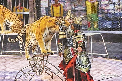 据悉,《朝阳公园大马戏》品牌由希肯琵雅国际文化于2016年创立,迄今已演出123场,观众超过10万人次。 2018《朝阳公园大马戏》会聚了各国艺术家,高空飞人吊环、人体空中组合等高难度表演者来自俄罗斯;马背跳跃、马肚穿越等马术表演者来自吉尔吉斯斯坦族。而马戏节目中必不可少的小丑演员,曾经荣获蒙特卡洛国际马戏节的金小丑奖、中国吴桥国际马戏节的金狮奖等重量级奖项。至于小观众最为期待的动物表演,不仅能看到可爱的小狗经过训练后展示倒立、钻圈、跳绳等游戏项目,印象中憨态可掬的黑狗熊在舞台上也一改笨拙的本色,化身体操健儿,为观众表演单杠、双杠、晃板、跳绳等运动项目。此外,整场演出中最为震撼的则是具有“王者风范”的狮虎秀,狮子与老虎将在驯兽师的引导下表演跳跃、钻圈、站立、大跳等惊险动作,巨兽宝宝排排坐,憨憨的样子又不失威严。