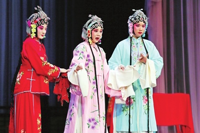 本报讯(记者 刘莉莉 摄影 姚文生)前天,天津市评剧白派剧团青年队“百日集训”汇报演出在海河剧院再献一出《桃李梅》。