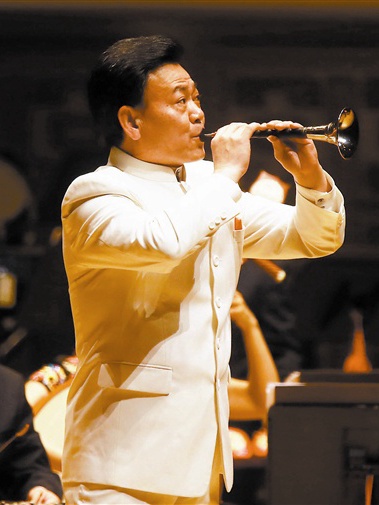 图① 赵存才表演唢呐独奏《百鸟朝凤》。