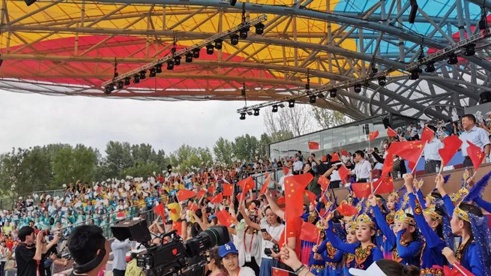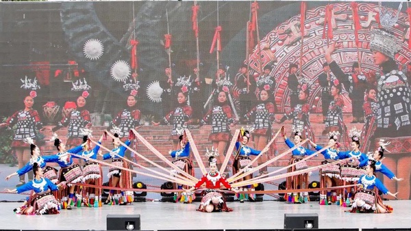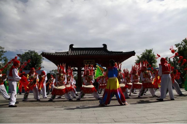 五位鼓者敲响五面大鼓,鼓声顺着妫汭湖荡漾开去。随后各个民族的特色鼓舞陆续亮相,鼓乐齐鸣,色彩缤纷,载歌载舞,花海歌潮。