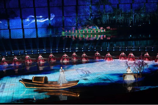 “风吹动花海,荡起美丽的涟漪,向往绿色的生活,在这里自由的呼吸”,整场演出以幺红、莫华伦领衔演唱的歌舞《爱我的家园》画上圆满的句号。自古以来,中华民族的文化内蕴常寓于山水之间,一山一水,可见万物;亦歌亦舞,赞美家园。悠扬舒展的音乐,翩翩而起的舞蹈,展现中华美好家园的锦绣壮丽;抒发对美好家园的热爱。