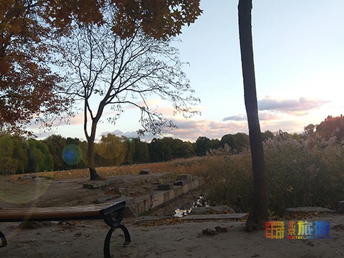 如果您去圆明园的时候正好赶上黄昏,那就更了不得了,红枫映晚霞,别说多美了!