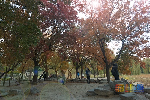 就在圆明园的东北角狮子林附近,有一片枫树林,此时正是层林尽染的时候,红彤彤的枫叶惹人喜爱。