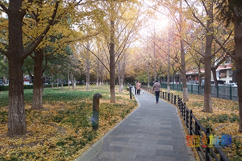 现在,园中的银杏尽成金黄。这景致,丝毫不比著名的“银杏大道”差!