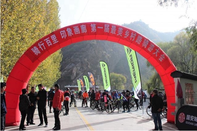 漫山红叶为秋天换上唯美的霓裳,骑上单车,伴随朝阳,欣赏百里山水画廊独特的秋韵,10月20日,北京延庆千家店镇举办“骑行百里 印象画廊第一届最美乡村路骑游大会”。