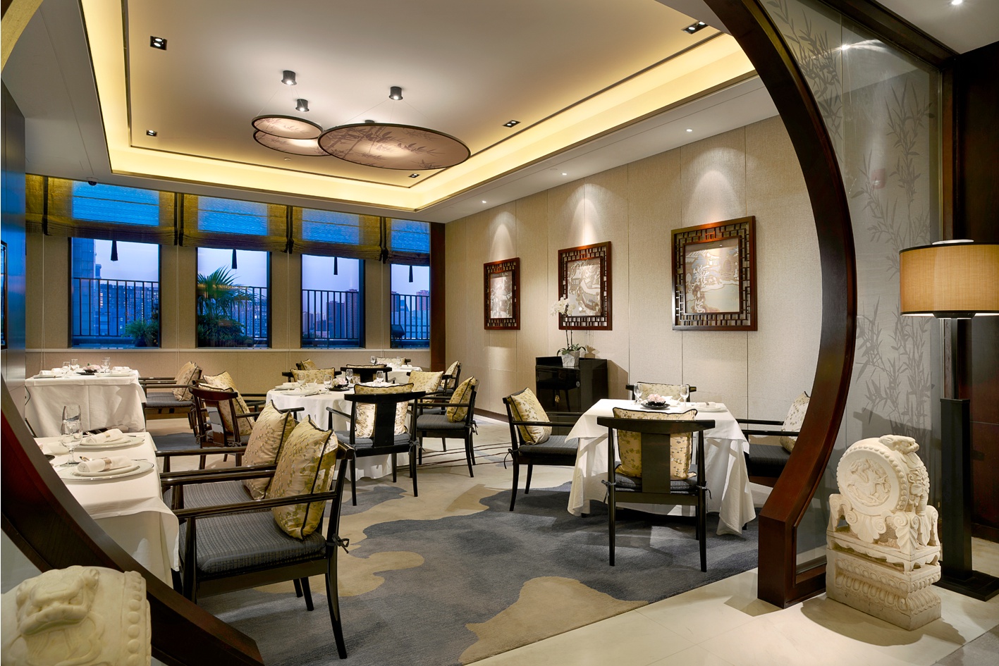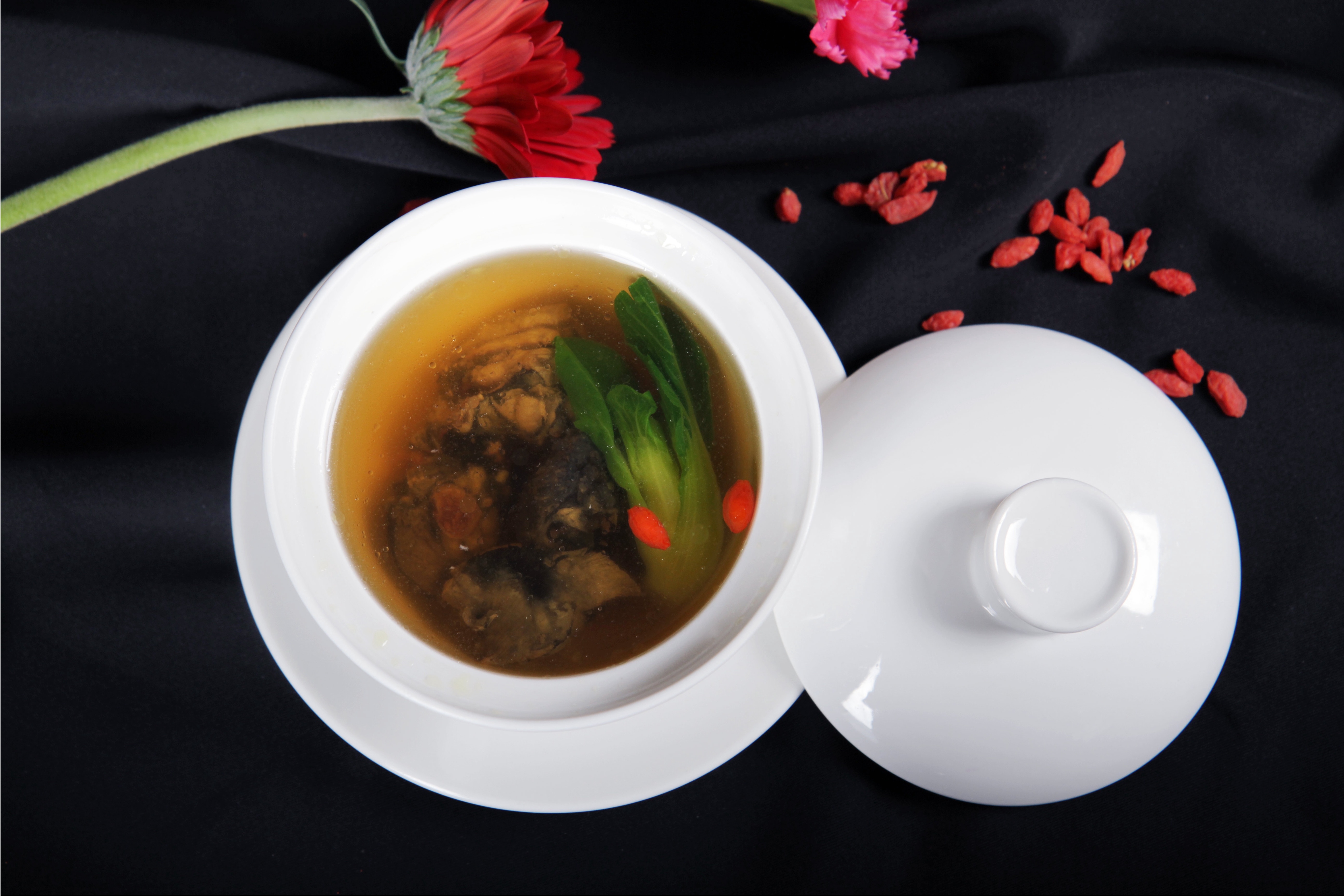 7道式菜单由酒店行政总厨蒋应荣先生精心选材,荤素搭配,滋补养颜。其中包含温润滋补的乌鸡汤、餐厅招牌菜品鸡头米虾仁和红煨雪花牛等,打造丰盛中式大餐,暖胃,更暖心。