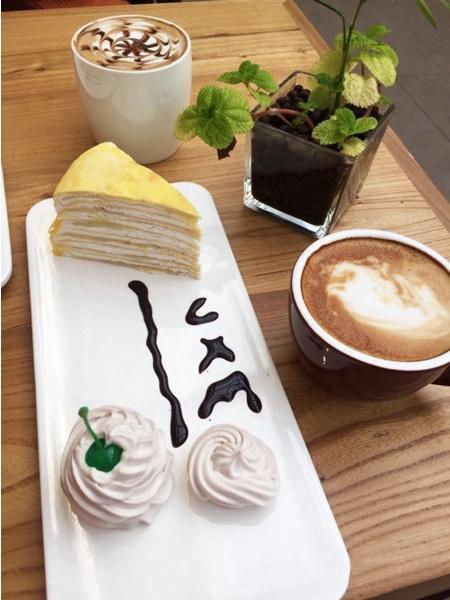 在当绿,咖啡+书已经成了到店客人的标配,许多人不习惯图书室的氛围,反而在咖啡馆轻松的环境下,更能够看得进书。当绿的甜品种类虽不多,但是每一款做得都很精致,重点推荐一款柳橙慕斯,蛋糕口感细软,加上上层香甜的柳橙酱,色、香、味面面俱到。