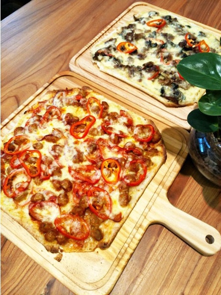在此,小编想要力荐一下火焰披萨,芝士馅料很充足,吃一口,满满都是幸福感。温馨提示,披萨带点辣味,不喜欢辣椒的小伙伴们,慎点!