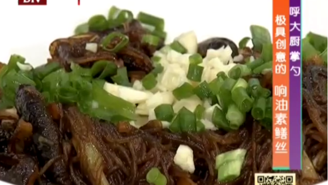 这道菜的妙处还不在于形似,香菇丝看上去还比较像鳝丝,更在于滋味的神似,以假乱真绝对不夸张。胡椒粉和麻油的用法是典型的鳝丝调味,香菇用干淀粉在油中煎制之后,口感有些滑嫩,可以媲美鳝丝肉。