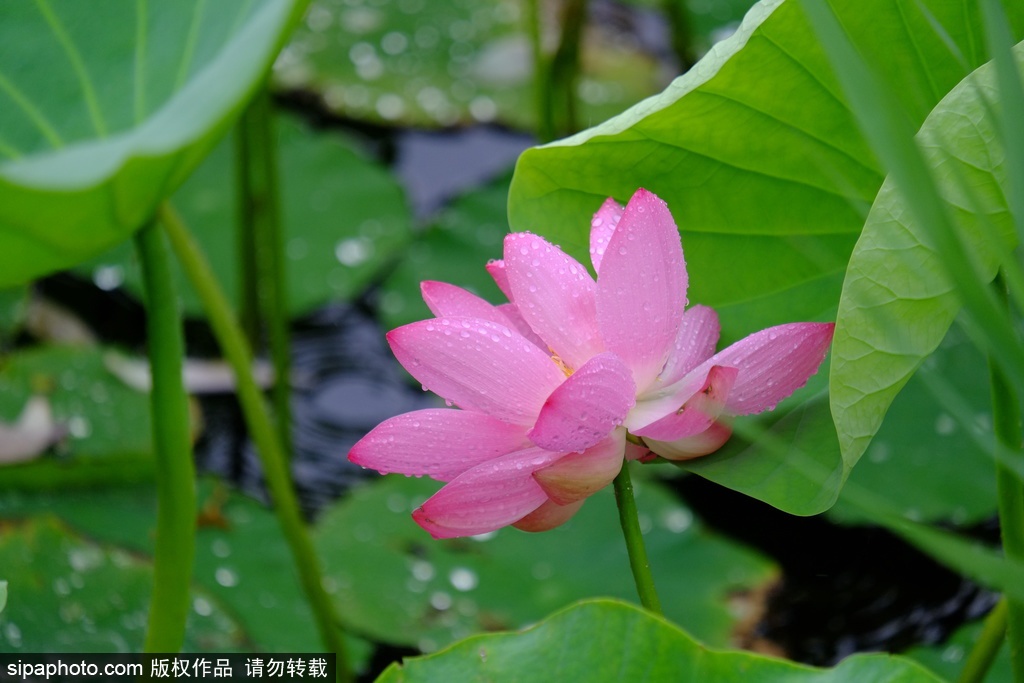 片云服雨过荷塘,绿盖难遮红锦裳。從倚水亭清俗虑,初禅勘悟色声香。——《雨中荷》