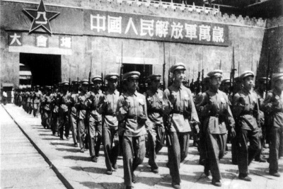 朝鲜民主主义人民共和国部长会议主席兼军事委员会委员长金日成致毛泽东的贺电说:“从长期帝国主义者们的侵略和蒋介石的反动统治下,中国人民得到了完全的解放。在争取中国人民的自由独立的斗争中和在为了发展与富强新的人民中国并保卫领土完整的斗争中,中国人民的真正子女——中国人民解放军所争取到的一切英勇事迹,更加鼓励和鼓舞了现在为了祖国的完全统一独立、消灭李承晚卖国匪帮、反对美帝国主义们野蛮的武装干涉而起来进行正义战争的朝鲜人民和全体朝鲜人民军的指战员们。”