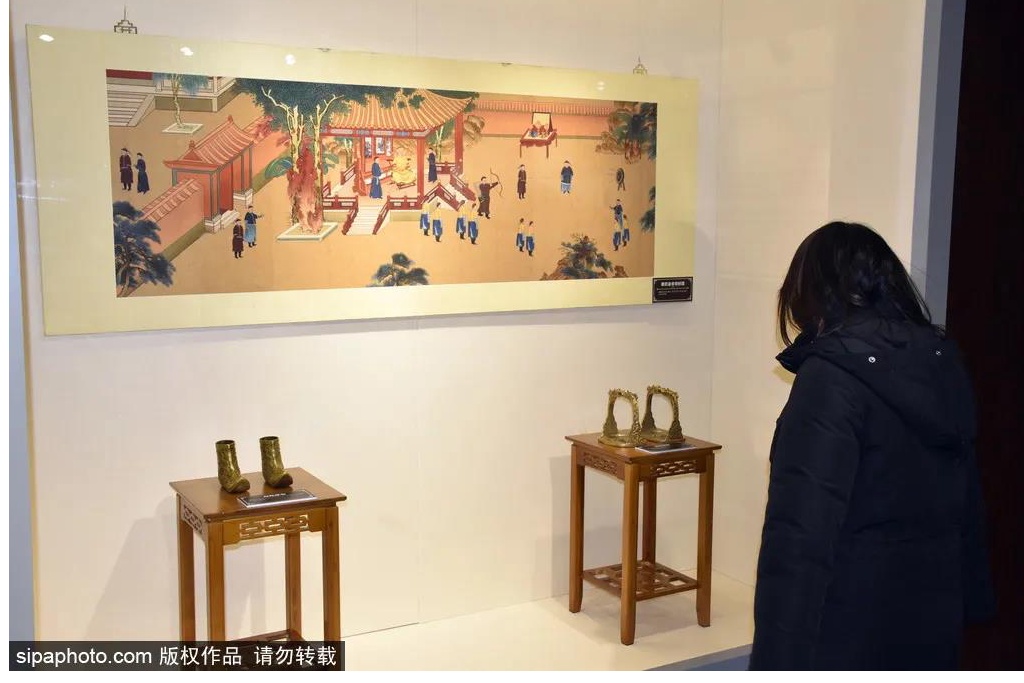 东配殿“投壶礼射”展览部分展示自战国时期就非常盛行的投掷游戏“投壶”的文化渊源。室外展区“中华骑射”主要包括射箭架势、射箭身法六忌、步射与骑射等内容。