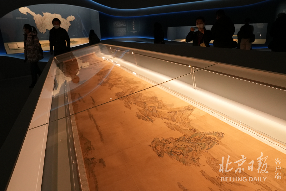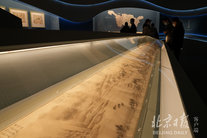 长江包容,汇纳百川,穿巴蜀,过荆楚,行赣晥,经吴越,东入大洋,自古以来滋养着中华民族的生命。一幅幅长江图,成为展厅里一大亮点。绘于清咸丰十一年(1861年)的《长江万里图》犹如一幅长江沿岸的实景写生,不仅描绘了从岷山至长江入海口沿途两岸景色,还为每一处地点配上了“图说”,融入了作者个人的想象与情感,更是中国文人士大夫“卧游山水”寄情天地的外化表现。