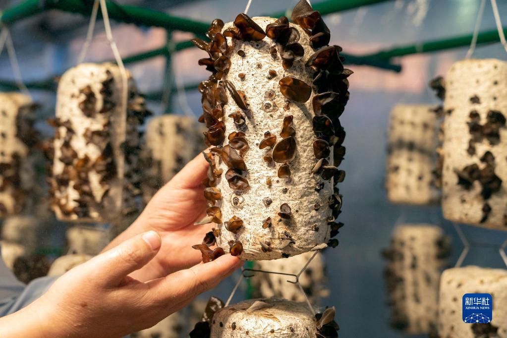 10月21日,在北京展览馆举行的国家“十三五”科技创新成就展上,工作人员展示陕西柞水木耳智能大棚中的木耳。新华社记者才扬摄