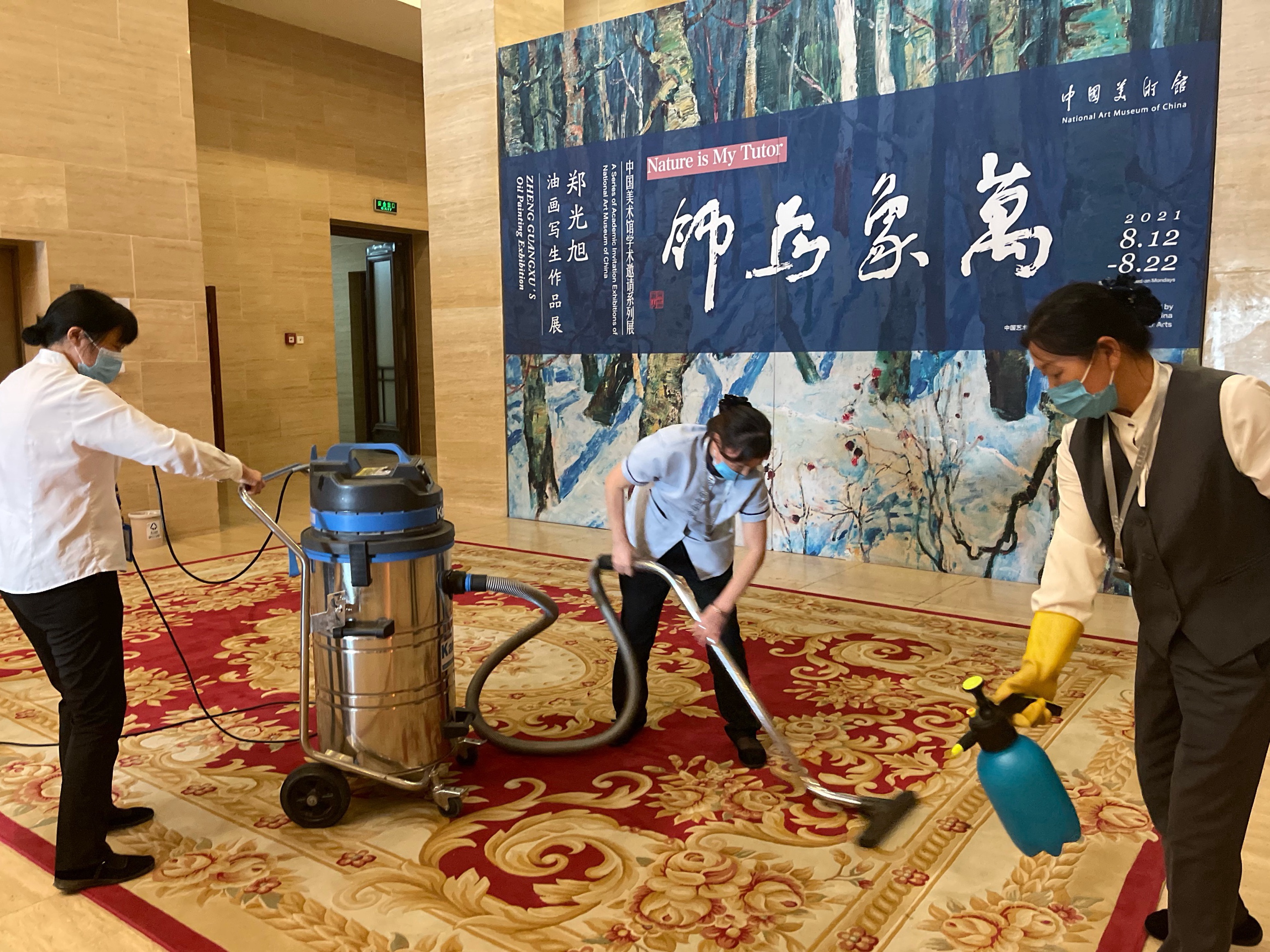 书画界全国政协委员美术作品展、黄河题材美术精品展、郑光旭油画写生作品展……8月13日,中国美术馆同时“上新”三大展览。记者注意到,在为观众打开艺术之门的同时,中国美术馆也加强了对馆内的人流控制、定时消杀等,确保疫情防控不留死角。