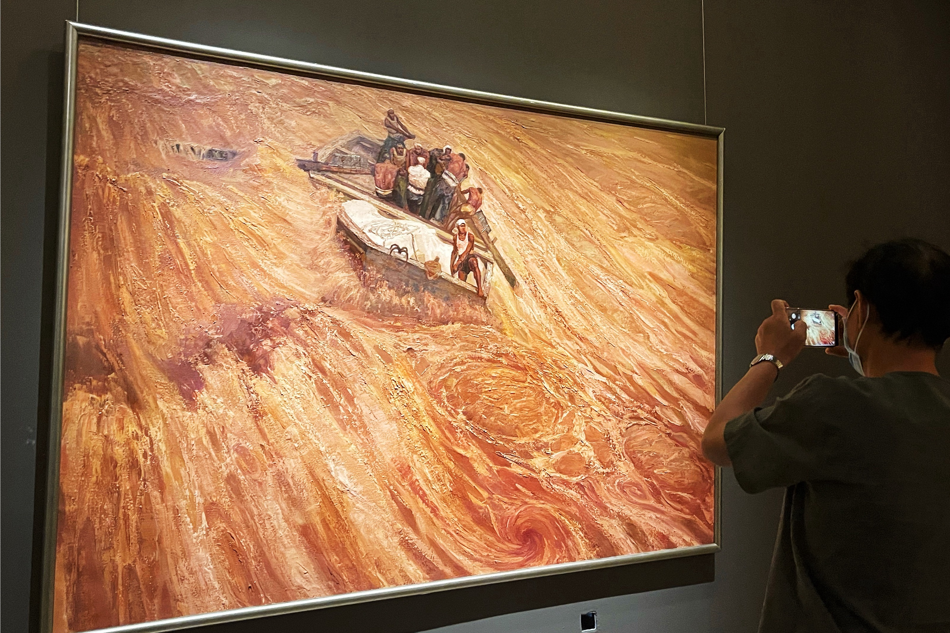 黄河文化,是中华民族文化的根和魂。为讲好“黄河故事”,中国美术馆主办了“在激流中前进——中国美术馆藏黄河题材美术精品展”,展出馆藏104位艺术家创作的中国画、油画、版画、雕塑、摄影、水彩、漆画、连环画、素描、宣传画等共131件作品,这也囊括了抗战以来几代美术家的黄河主题创作。