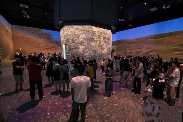 “遇见敦煌·光影艺术展全球首展”23日在北京开幕。该展览以3D光雕数字技术再现了敦煌石窟文化的艺术魅力。