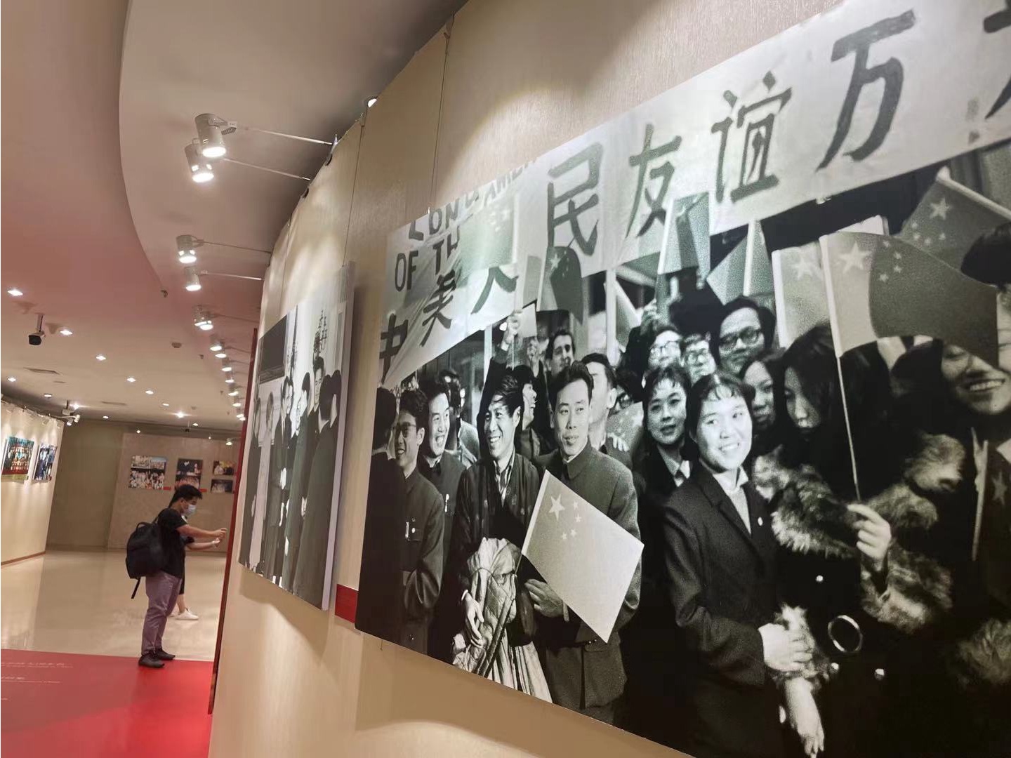 此次图片展以时间为主线,用大量珍贵历史图片,多层次、全方位展示新中国杂技在不同历史时期,在对外文化交流中所做出的巨大贡献。在新中国成立之初,中国与苏联、捷克斯洛伐克、波兰、罗马尼亚等十个国家建交,中国杂技演员就奔赴这些国家和周边邻国进行友好访问。他们以杂技这门超越语言的艺术,为中国和世界建立起更为密切的关系,那一阶段的黑白照片上总能看到“友谊万岁”的字样。在“中美建交”这样重要的时刻,也可以看到中国杂技演员的身影。几张老照片分别记录了这样的场景:1972年时任美国总统尼克松来沪签署《联合公报》期间,在周恩来总理的陪同下观看上海杂技团的演出;1973年,美国总统尼克松又在白宫接见沈阳杂技团成员。