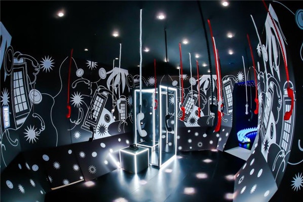 在童真境界,充满着小朋友喜爱的元素,大型牛牛公仔、跷跷板、哈哈镜和通过触摸展现不同图案的像素墙……大朋友也会在这个空间里找到儿时的旧时光。走进当下之光,空间里有着荧光闪烁,可以照亮脚下的位置,好似站在当下生活的中心,看着光依次扩散,感受这个由光点亮的治愈世界。在未来诉语空间能听到这个宇宙中各种熟悉又未知的声音,感觉像是脱离了现实,在聆听、想象未来。