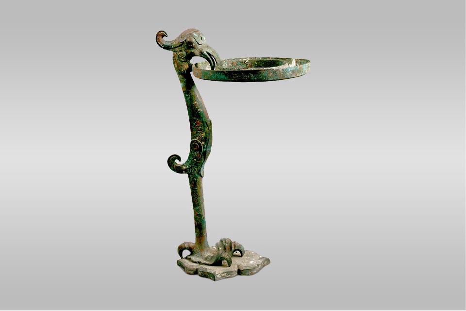 此灯造型秀丽,工艺精美,是西汉铜灯中的精品。鹰的形态栩 栩如生,设计巧妙,构思精细,在制造上体现了科学性和艺术性的 高度统一。