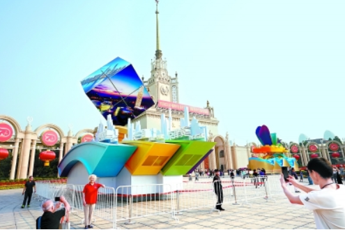 本报讯(记者 王广燕)昨天,北京展览馆南广场被缤纷的色彩装扮一新——7辆刚刚参加过庆祝中华人民共和国成立70周年大会的彩车在这里亮相,成为“伟大历程 辉煌成就”成就展的最新看点。