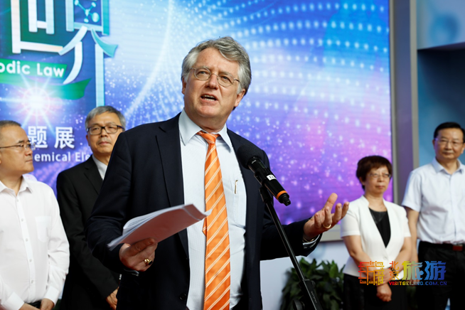 7月10日上午9:30,“律动世界——化学元素周期表专题展”开幕式在中国科技馆短期展厅门口举行。开幕式由中国科技馆副馆长欧建成主持,中国科协书记处书记、副主席孟庆海,中国化学会副理事长、中国科学院大连化学物理研究所研究员、中国科学院院士杨学明,中国科协党组成员、中国科技馆馆长殷皓,中国科协科普部副部长廖红,巴斯夫全球副总裁、中国首席代表伍德克,以及北京大学化学学院、中国地质博物馆等单位领导共同出席启动仪式。杨学明院士、伍德克副总裁、殷皓馆长在开幕式中分别致辞。