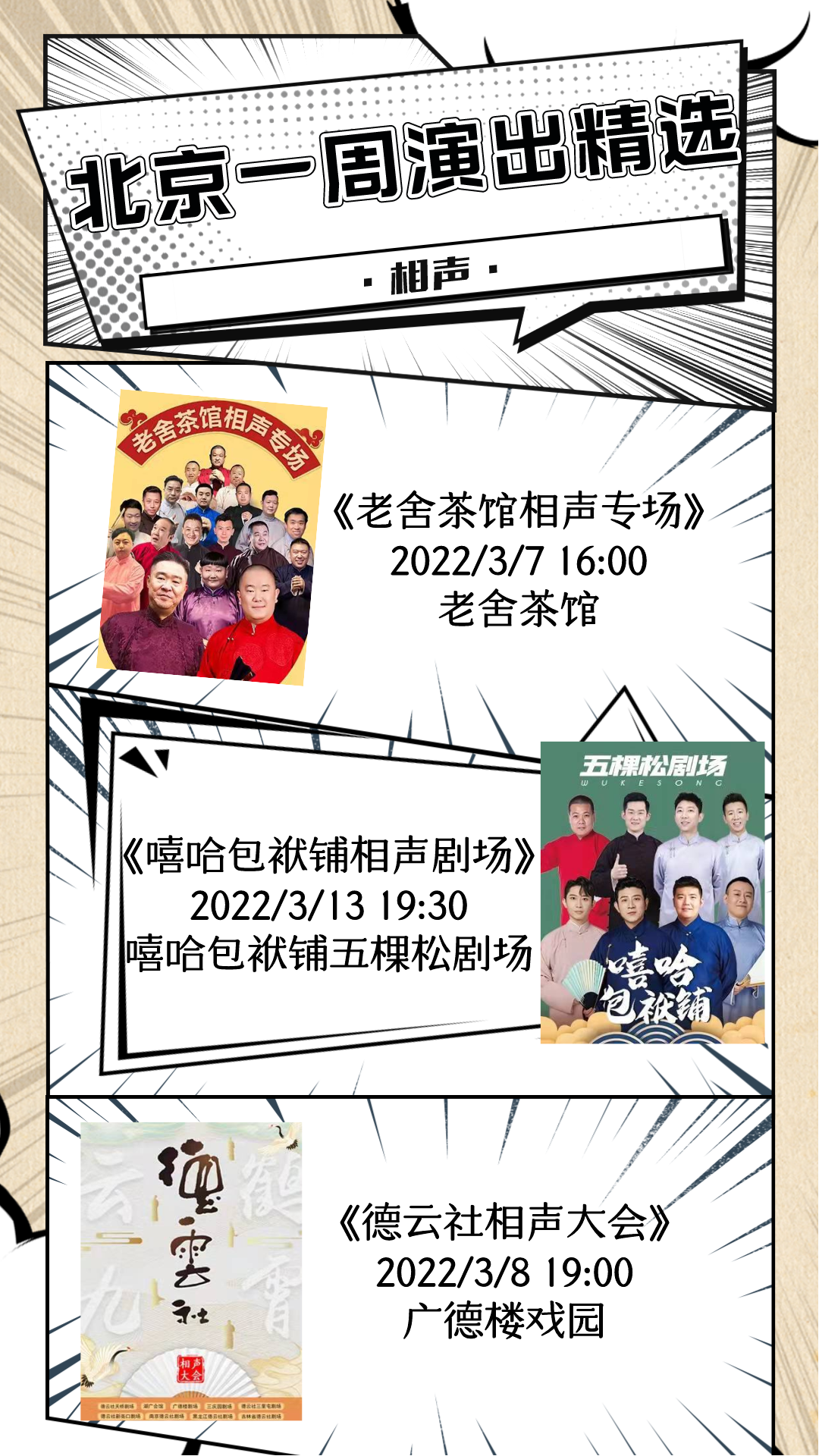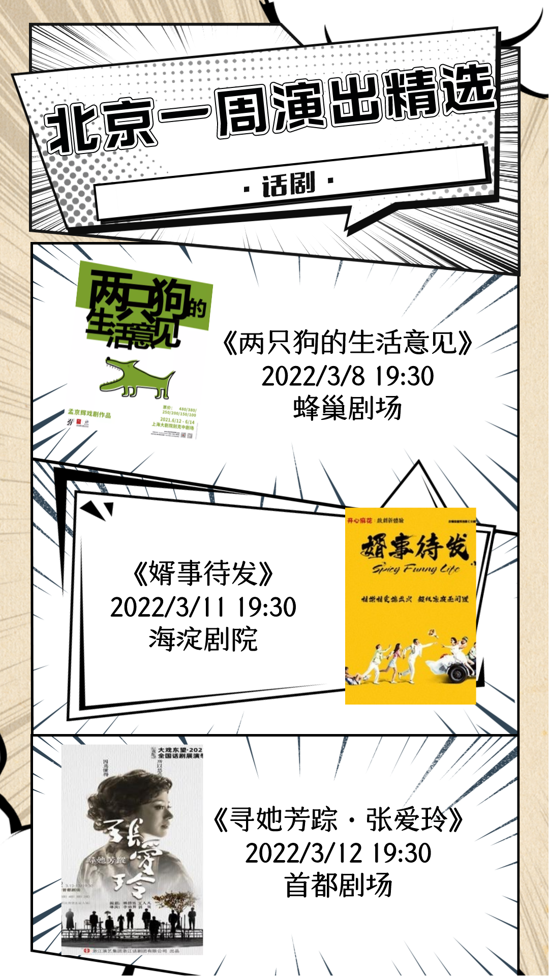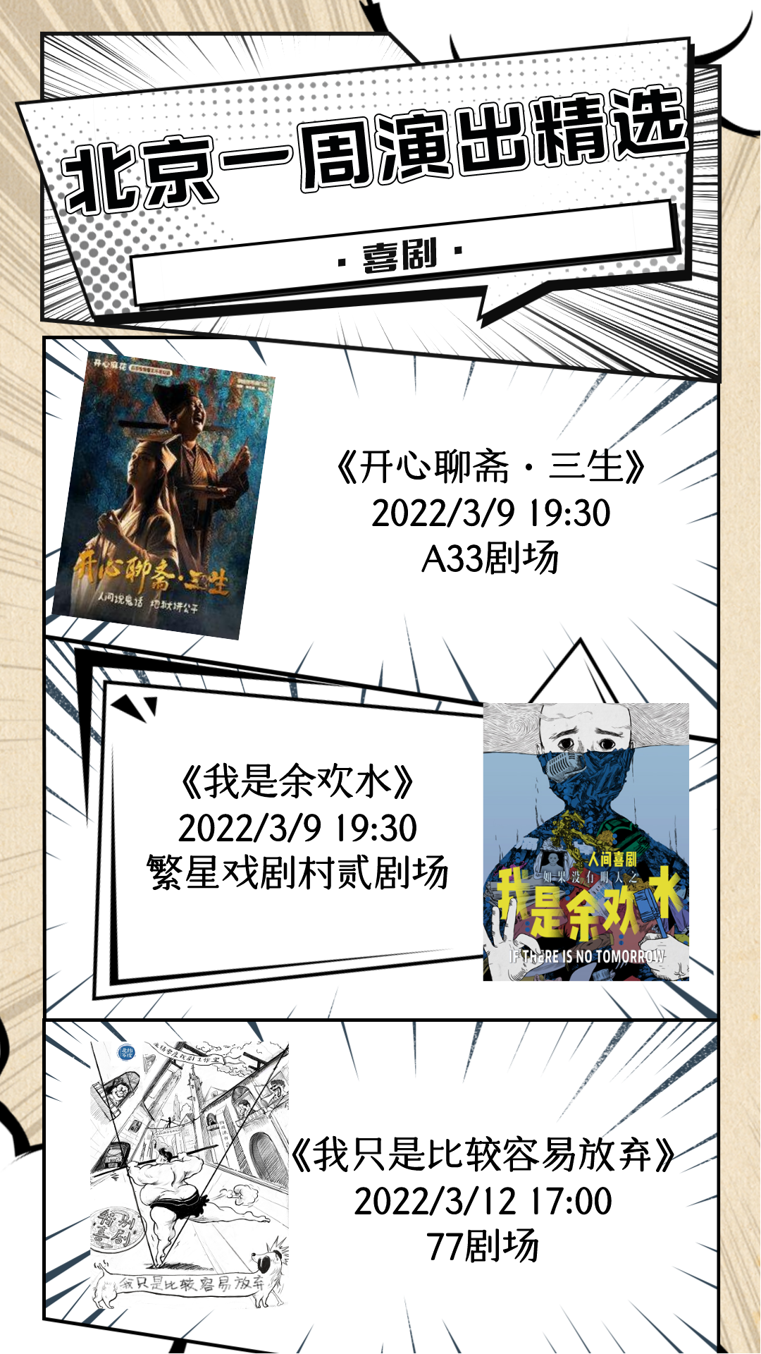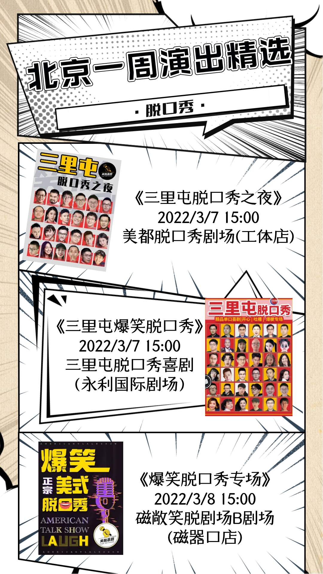 新的一周已经开启,小北整理了北京商业演出节目单,脱口秀、话剧、儿童剧、音乐会等,超多精彩演出等你来!点击查看完整版:2022年3月7日—3月13日北京商业演出信息“出炉”