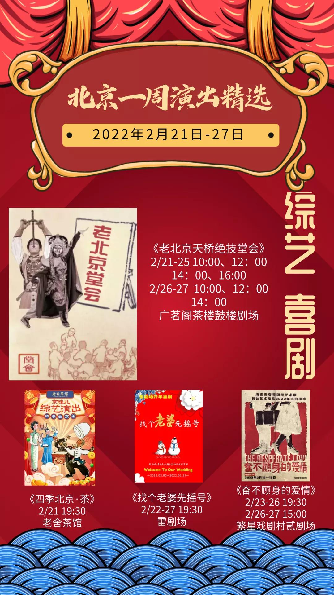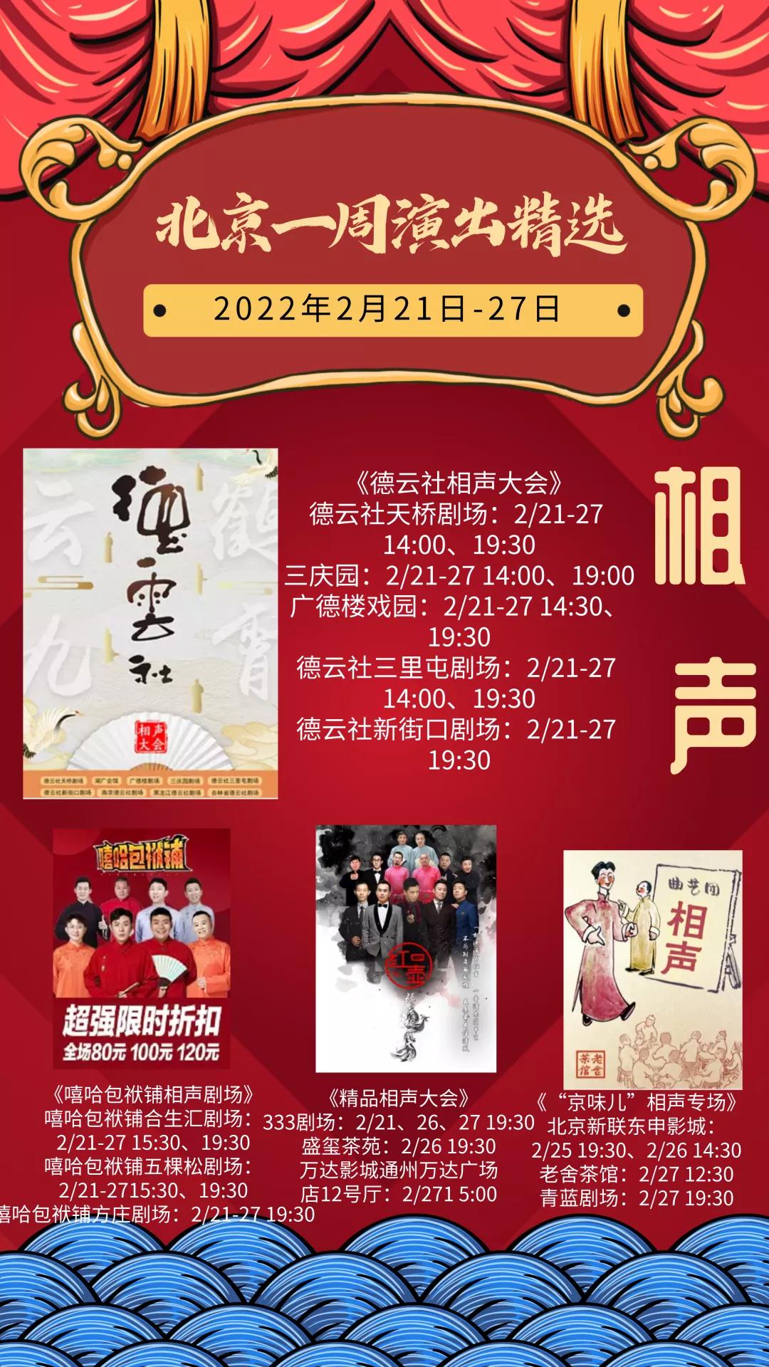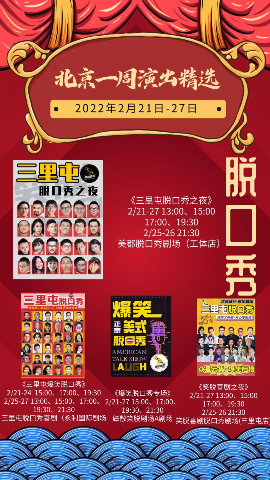 新的一周已经开启,小北整理了北京商业演出节目单,相声、脱口秀、综艺、喜剧等超多精彩演出等你来,点击2022年2月21日—2月27日北京商业演出信息“出炉”,查看完整版。