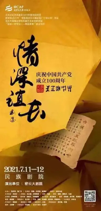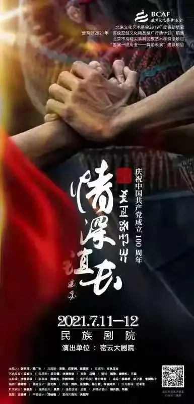 为庆祝中国共产党成立100周年,2021年7月11日-12日特邀中央民族大学舞蹈学院在密云大剧场上演原创民族舞剧《情深谊长》,先来一段宣传片,大家快来感受一下~