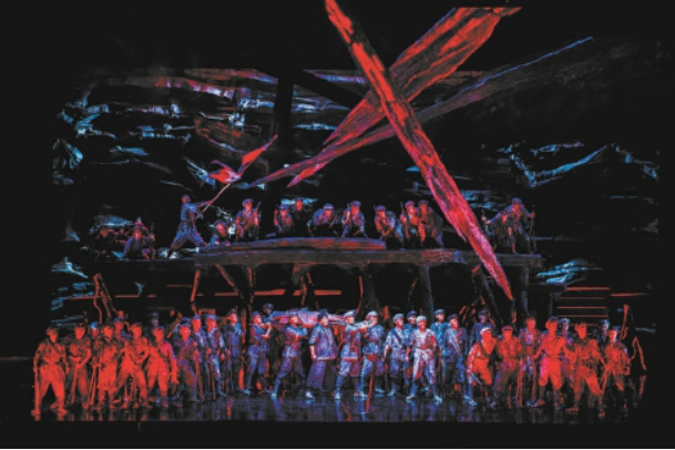 本报记者 徐颢哲“英雄血染湘江渡,江底尽埋英烈骨。”11月10日至11日,以红军长征途中最悲壮的一战——湘江战役为创作背景的原创歌剧《血色湘江》,在国家大剧院连演两场。前晚的演出现场,一段段激越昂扬的唱词和兼具史诗性与地方性的磅礴旋律,唱进了每一位观众心里——每一幕间,很多观众自发起立,面向舞台致以最热烈的掌声。演出结束后,甚至有不少人久久不愿离去。