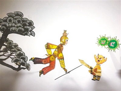 动画中,拟人化的“冠状病毒”造型逼真,“雷神山”“火神山”的造型也出现在古老的皮影屏幕上,正义的化身孙悟空携手“三山”击败病毒妖的情节表达出人们对打赢疫情防控阻击战的决心。