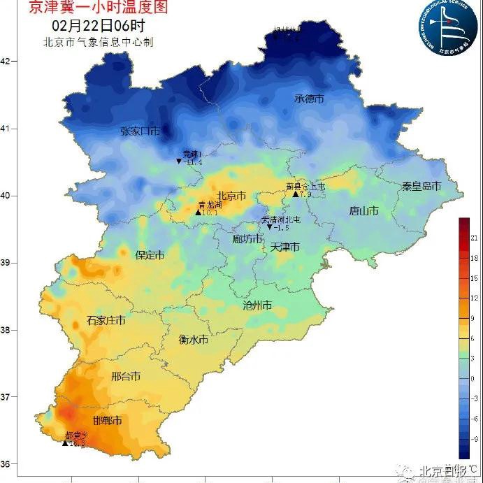 22日夜间,北京北部地区小雪和零星小雪现身,最低气温0℃。