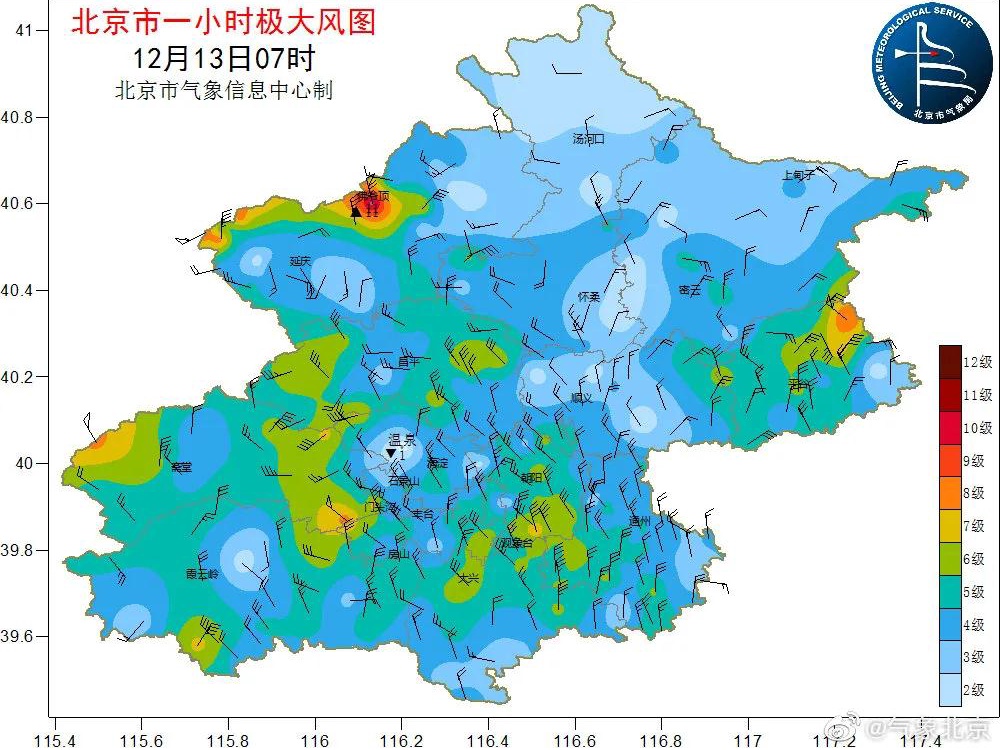 雪后,一股冷空气开始影响京城,在其作用下,今天四五级的偏北风开始呼啸,城区阵风七级,西部北部阵风七八级,高海拔山区更大,可达到八级以上。从今早7时的实况来看,大部分地区的风力已经达到三四级,平原地区的气温仅有-5 ℃上下,非常冻人。
