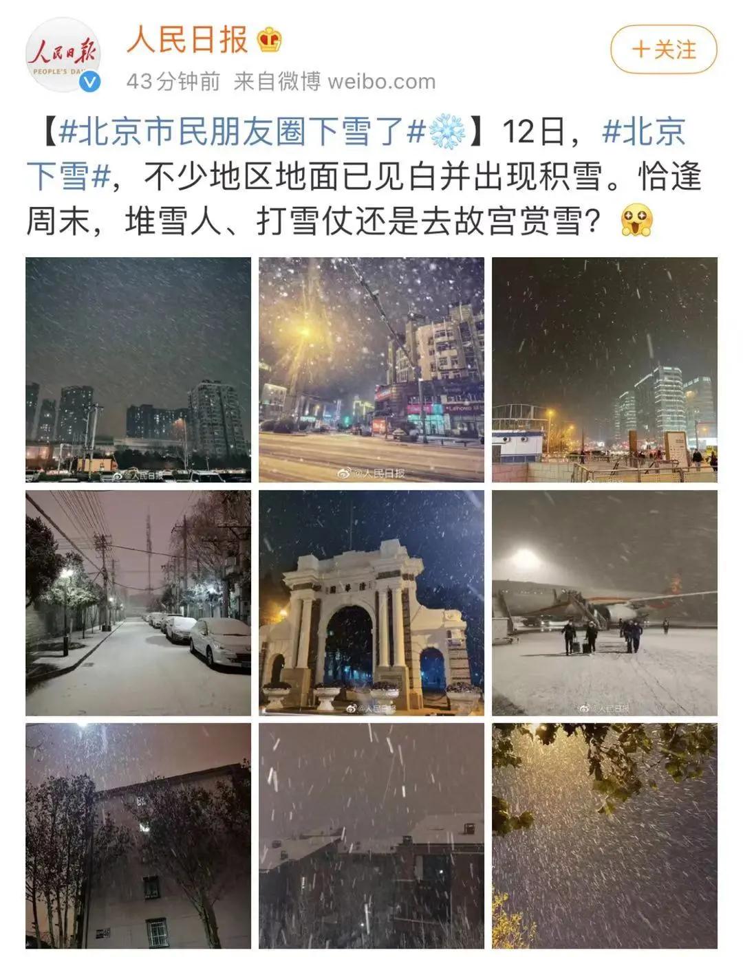 突然而来的惊喜令人狂欢,北京昨晚下雪啦!由于地表温度较低,虽然降雪量不大,但很多地方都被一层白白的雪花覆盖,让宁静的夜晚增添了一份静谧。