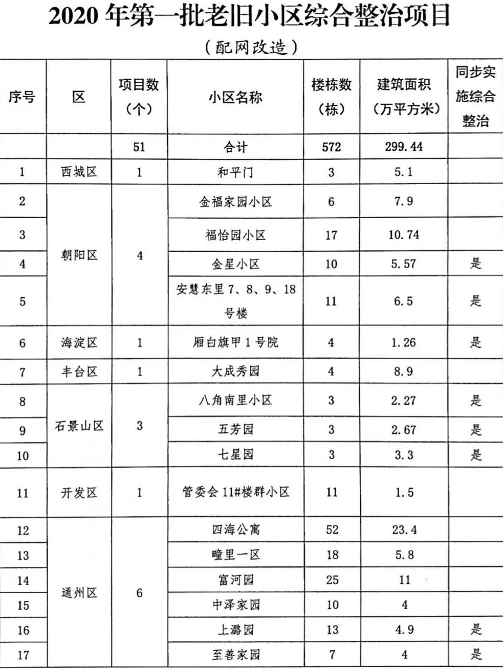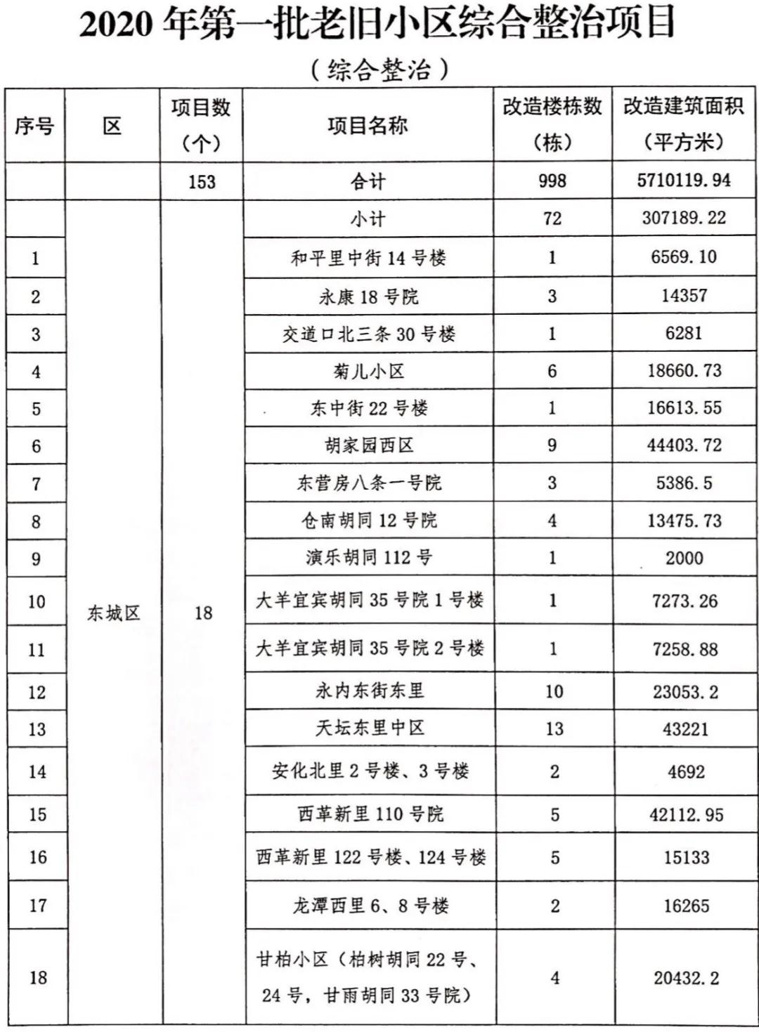 首批老旧小区综合整治名单共有153个项目,改造楼栋数998栋,改造建筑面积517万平方米!
