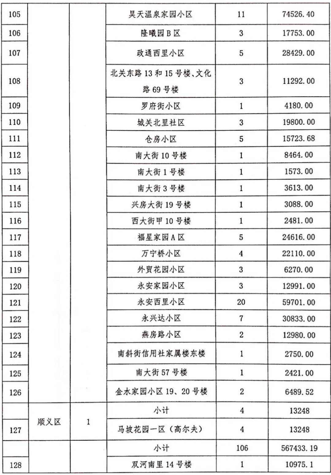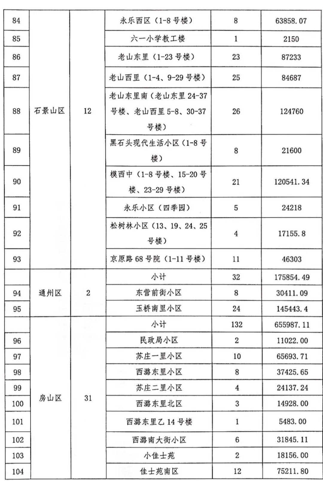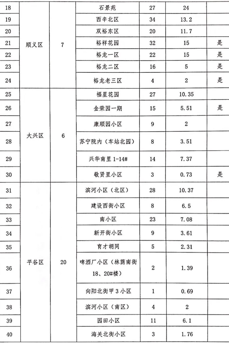 全部是朝阳区的小区,这批确认的名单全部是朝阳区的小区为安华里社区、安外社区、安贞西里三区(靓丽花园小区)、松五小区、松西社区(北一小区)、西坝河北里15号院6个小区,共涉及69个楼栋,建筑面积约46.2万平方米。