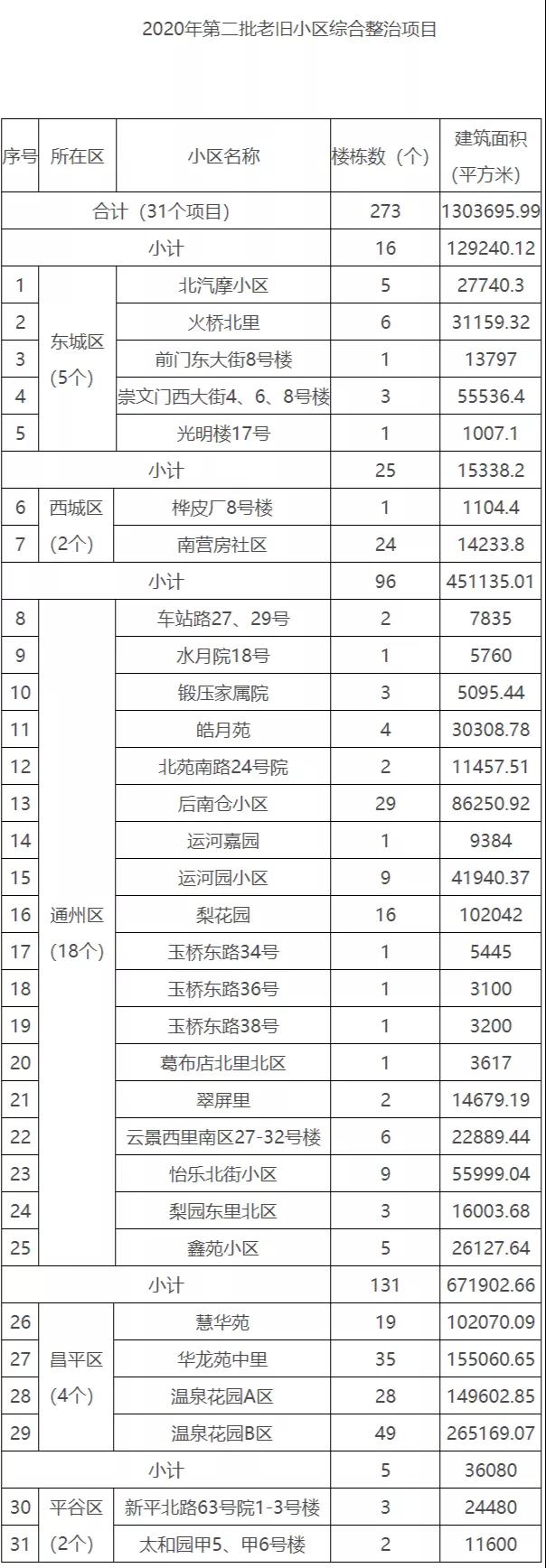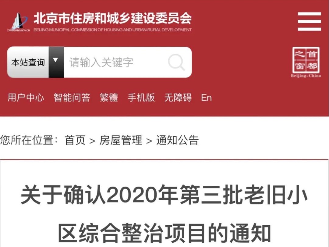 北京2020年第二批、第三批老旧小区综合整治项目共37个小区、342个楼栋!